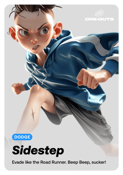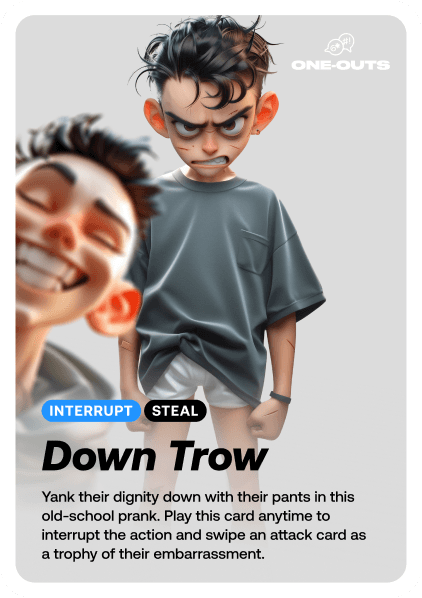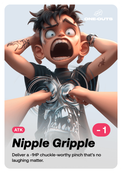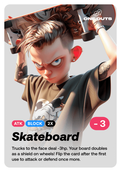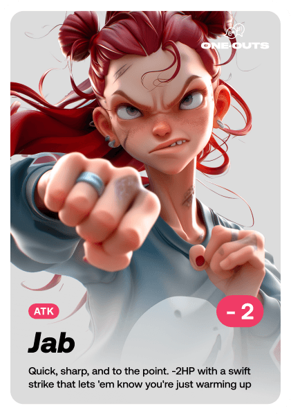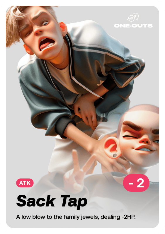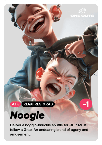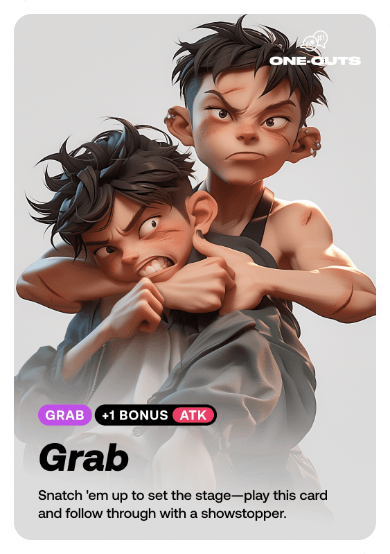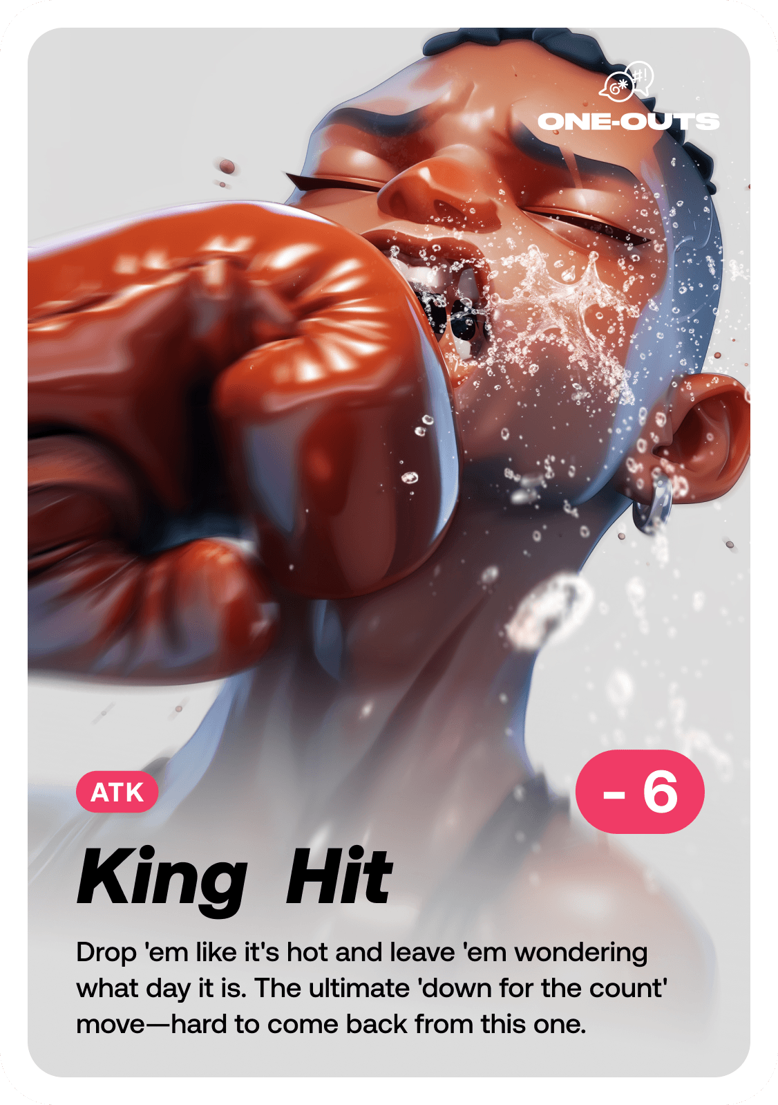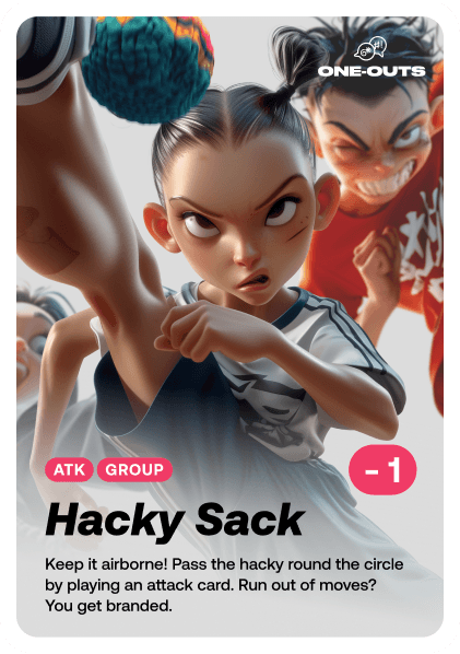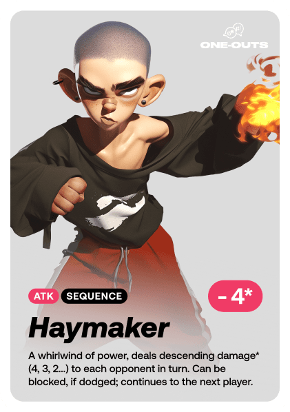 OneOuts is a nostalgic, cheeky punch-up card game for 3 or more mates. You’ll throw haymakers, hacky-sack your way through group attacks, and slow-mo dodge like you’re starring in a VHS kung-fu marathon. Start with 7 HP and fight dirty, because when your health hits zero, you’re out.
